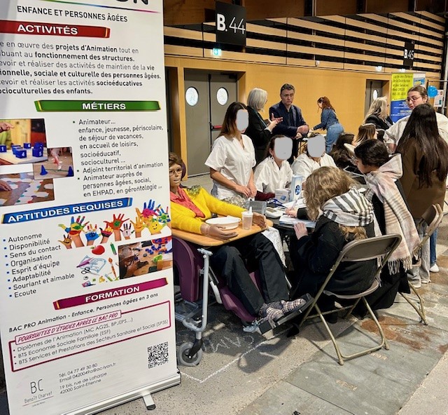 Les filières du lycée étaient bien représentées au forum des métiers de Saint Etienne. L'occasion pour nos élèves de bac pro AGORA (Assistance Gestion Organisation et Activités), VENTE COMMERCE ACCUEIL, ASSP (Accompagnement Soins et Services à la Personne), ANIMATION, SPORT, COIFFURE et ESTHETIQUE de montrer leurs talents et donner envie aux collégiens de nous rejoindre pour apprendre des métiers passions.