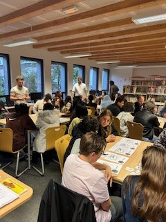 Une répartition en plusieurs îlots métiers, chacun animé par un professionnel et/ou un enseignant de la filière ont permis, par le biais de jeu type « devine mon métier », de faire émerger de nombreux échanges, où les élèves ont pu réfléchir et questionner des pistes d’orientation.