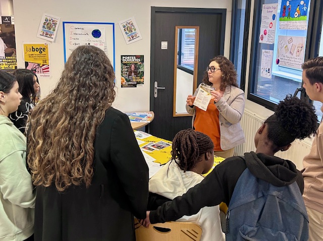 🌟 Sur un autre stand, les élèves ont pu bénéficier des précieux conseils de l’Espace Info Jeunes de la Ville de Saint-Étienne qui a pu « prêcher » la bonne parole quant aux aides, bons plans et astuces dont peuvent bénéficier tous les élèves du lycée via La Boge.